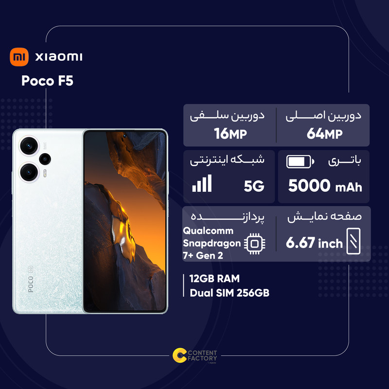 گوشی موبایل شیائومی مدل Poco F5 دو سیم کارت ظرفیت 256 گیگابایت و رم 12 گیگابایت
