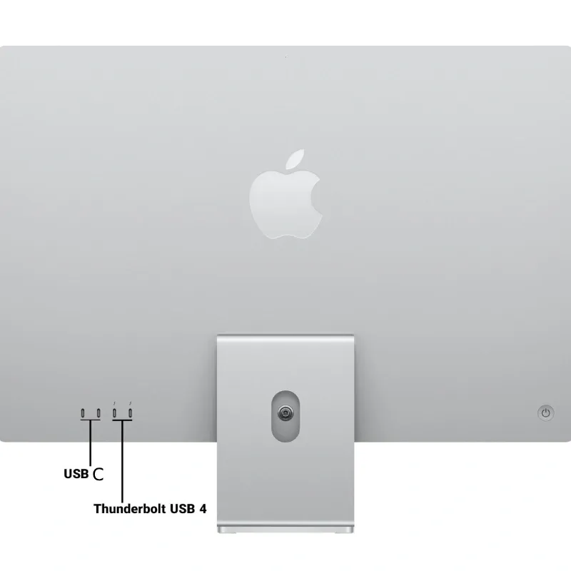- پورتها و امکانات فیزیکی آیمک مجهز به درگاههای Thunderbolt / USB‑C با پهنای باند بالا برای اتصال نمایشگر ثانویه، SSD اکسترنال و داکهای متعدد است. در برخی مدلها پورتهای USB-A اضافی و جک هدفون نیز موجود است.