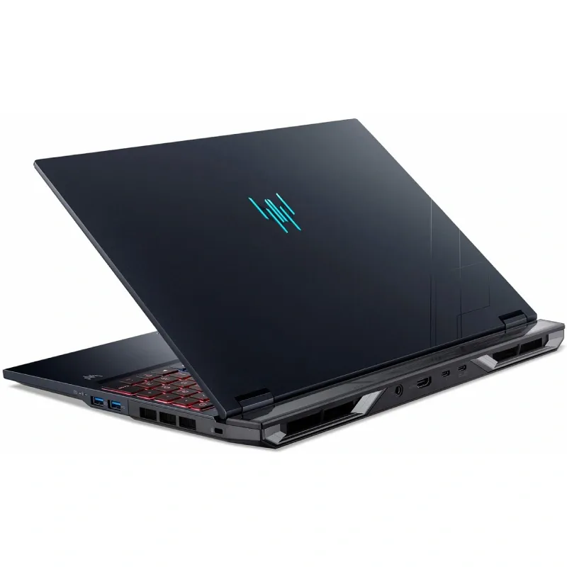 ظاهر و فیزیک بدنه Predator Helios Neo 16 AI از زبان طراحی خانوادهٔ Predator بهره میبرد؛ خطوط تهاجمی اما مدرن، گوشههای تراشخورده و پوشش مات که اثر انگشت را کمتر نشان میدهد. بدنه عمدتاً از آلیاژهای سبک و پلاستیک تقویتشده ساخته شده تا تعادل میان استحکام و وزن برقرار شود. ضخامت دستگاه برای یک لپتاپ 16 اینچی گیمینگ نسبتا متعادل است و طراحی پنلها و لبهها به گونهای است که حس یک محصول حرفهای و ویژه را منتقل کند.