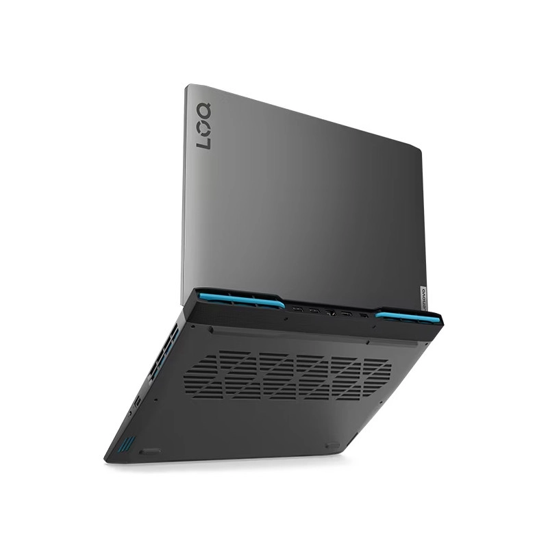 طراحی لولا به گونهای است که امکان باز شدن صفحه نمایش تا حدود ۱۸۰ درجه را فراهم میکند، هرچند این ویژگی بیشتر جنبه زیباییشناختی دارد تا کاربردی در لپتاپهای گیمینگ. لوگوی LOQ به صورت ظریف روی درب دستگاه حک شده که نشاندهنده هویت جدید این سری است.