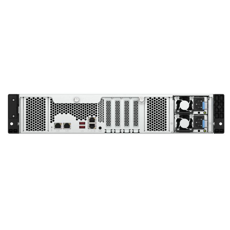سیستم خنککاری پیشرفته: بزرگترین چالش در طراحی 1U، مدیریت حرارت است. QNAP این چالش را با سه فن ۴۰ میلیمتری با دور متغیر و طراحی دقیق تونل هوای داخلی حل کرده است. این سیستم به صورت هوشمند سرعت فنها را بر اساس دمای داخلی تنظیم میکند.